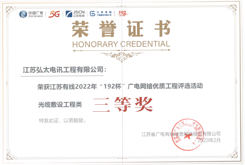 光缆敷设工程类三等奖