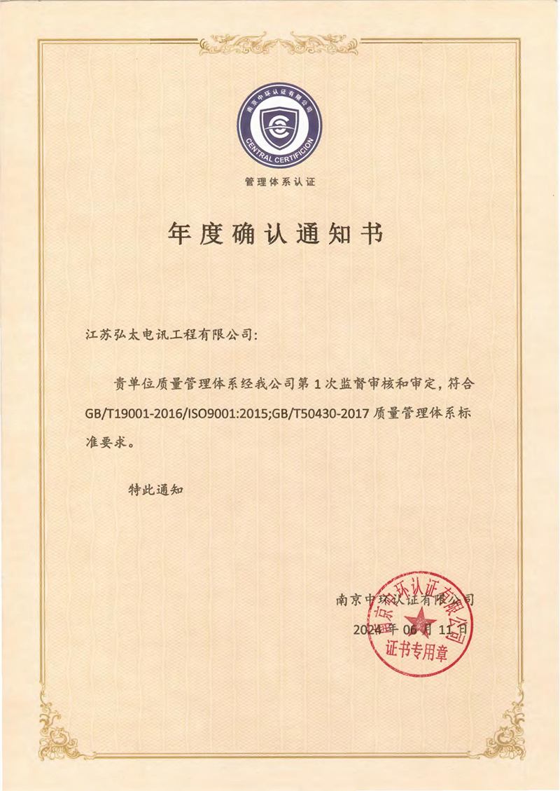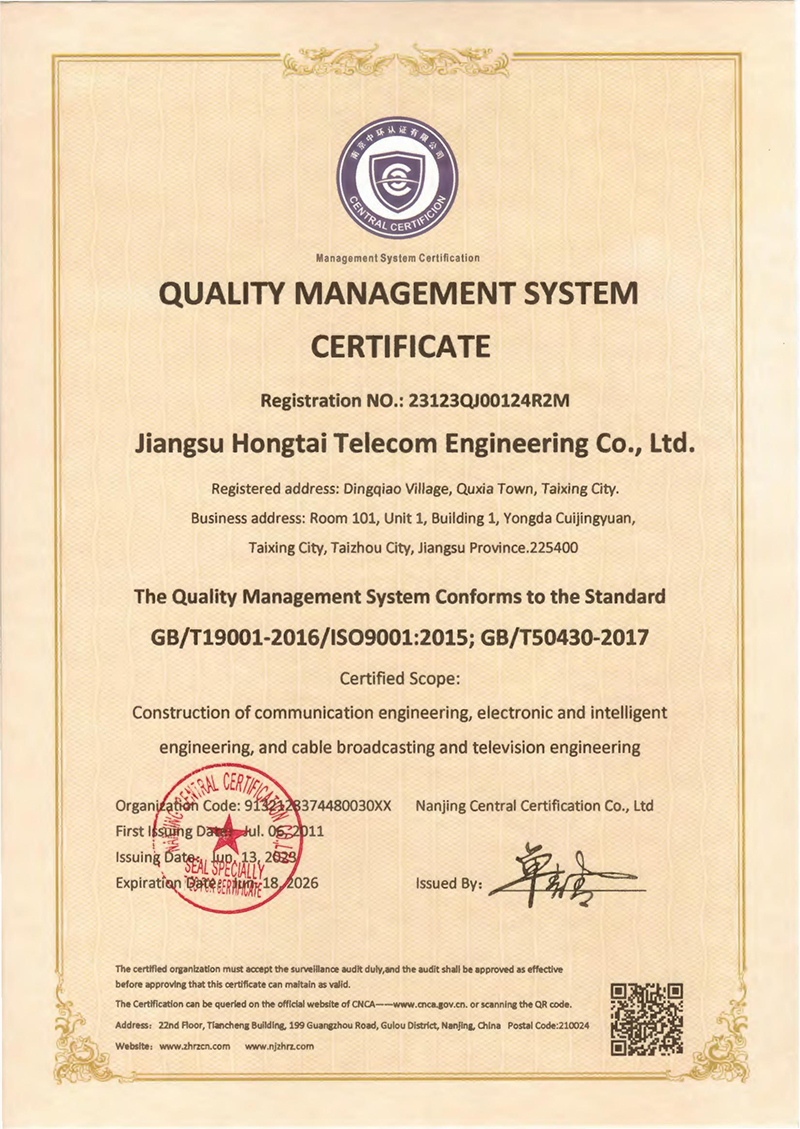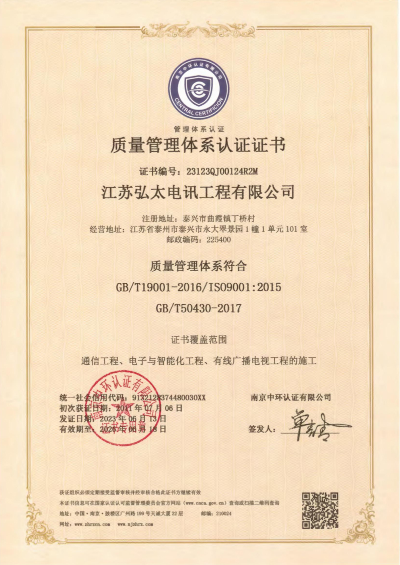 质量管理体系认证证书