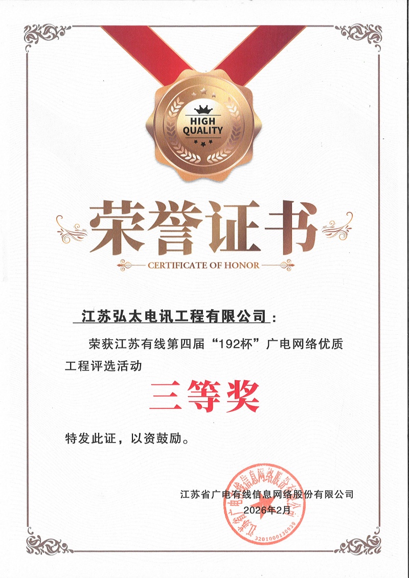 江苏有线第四届“192”杯广电网络优质工程三等奖
